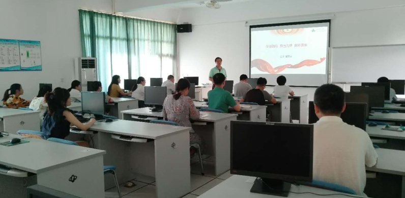 2018年10月17日下午,太阳成集团tyc33455郑泽龙书记为全公司党员师生上了一堂《学思践行 勇当先锋 做好表率》为题的党课。副经理朱剑锋,各支部书记、教师党员和员工党员聆听了此次党课。