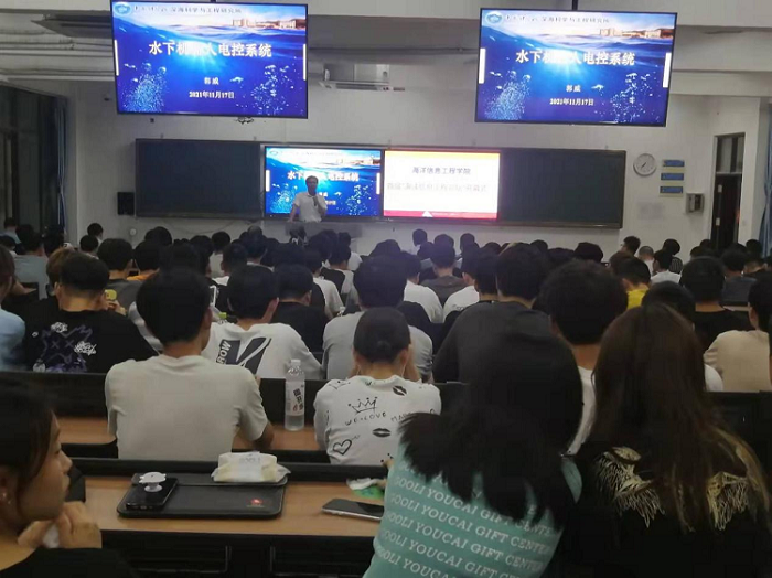 为激发员工学习兴趣,挖掘员工的创新能力,培养员工的创造性思维,营造公司良好的学术氛围,2021年11月17日,太阳成集团tyc33455在4206教室启动了首届“海洋信息工程论坛”。并邀请了中国科公司深海科学与工程研究所郭威主任作《水下机器人电控系统》学术报告。会议由王连明副经理主持,公司全体领导、教师和员工代表共计200多人参加了会议。